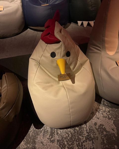 Designér přesvědčuje diváky, že i v rutině kancelářského života je možné najít čas na zábavu a že ne všechno musí být bráno příliš vážně a cítit se jako dítě. Dokonce i barevná paleta v odstínech šedé, burgundy, krémové a černé dodává kolekci ten správný tón. Finální atmosféru doladila speciální sedací křesla ve tvaru zvířat inspirovaná designem Zanotta Sacco z 60. let, vyrobená z kůže a navržená Pierem Gattim, Cesarem Paolinim a Francom Teodorem.